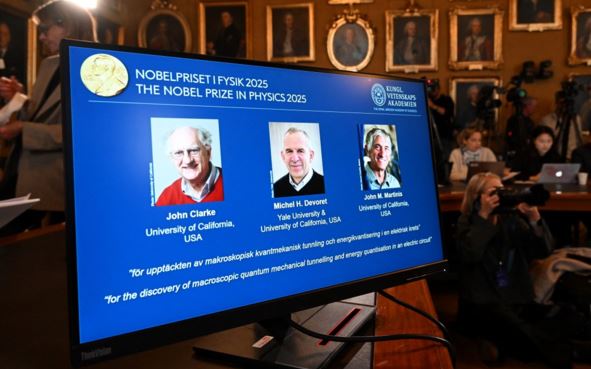 Comité anuncia los ganadores del Nobel de Física 2025. FOTO:AFP El Premio Nobel de Física 2025 fue entregado...