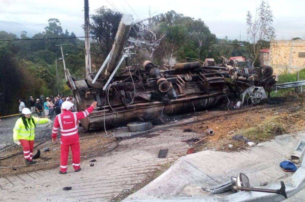 La emergencia se originó por el volcamiento de un tractocamión que transportaba crudo, lo que provocó un incendio en la zona. En el lugar fallecieron el conductor y una mujer que lo acompañaba como copiloto, quienes tras perder el control saltaron del vehículo, pero lamentablemente murieron a causa de los politraumatismos. El automotor contaba con 11 años de servicio, revisión técnico-mecánica y SOAT vigente.
